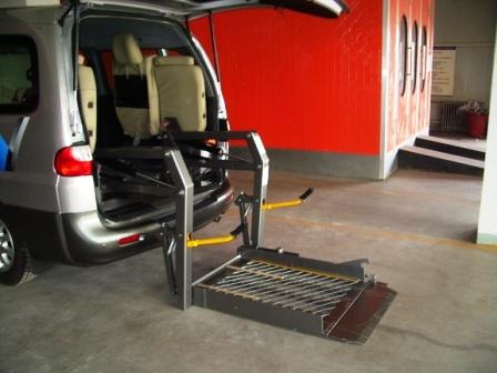 (1)、在使用輪椅升降機前,車輛必須停駛在平坦的路面上,注意不要停靠在斜坡上。
